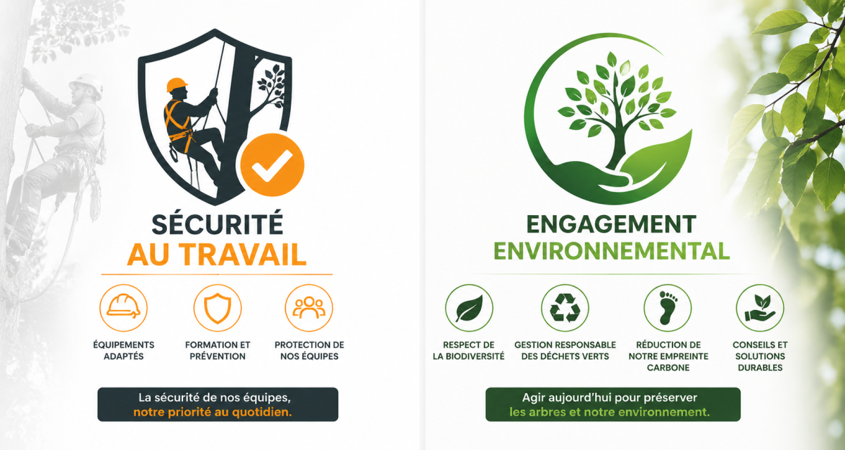 Au-delà de la sécurité, nous cultivons un respect écologique concret : déchets triés, huiles de tronçonneuse écologiques, et valorisation des bois en combustible ou paillage pour limiter notre empreinte.